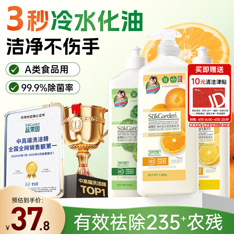 【自营】蔬果园 洗碗精2.88kg 34.9亓 U,Plus33.1亓包