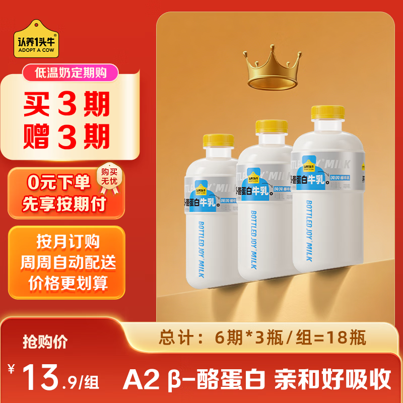 先领200-20补帖卷 【自营】认养一头牛 吨吨奶 A2β-酪蛋白低温鲜