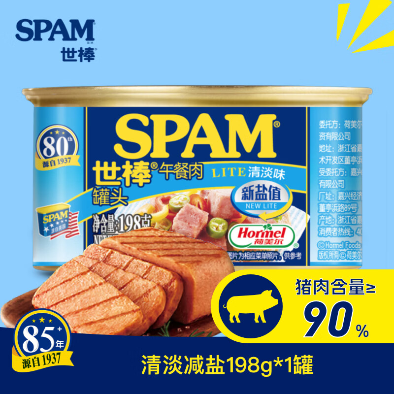 先领29-10补帖卷 世棒 减盐午餐肉罐头198g/罐 买4件35.9