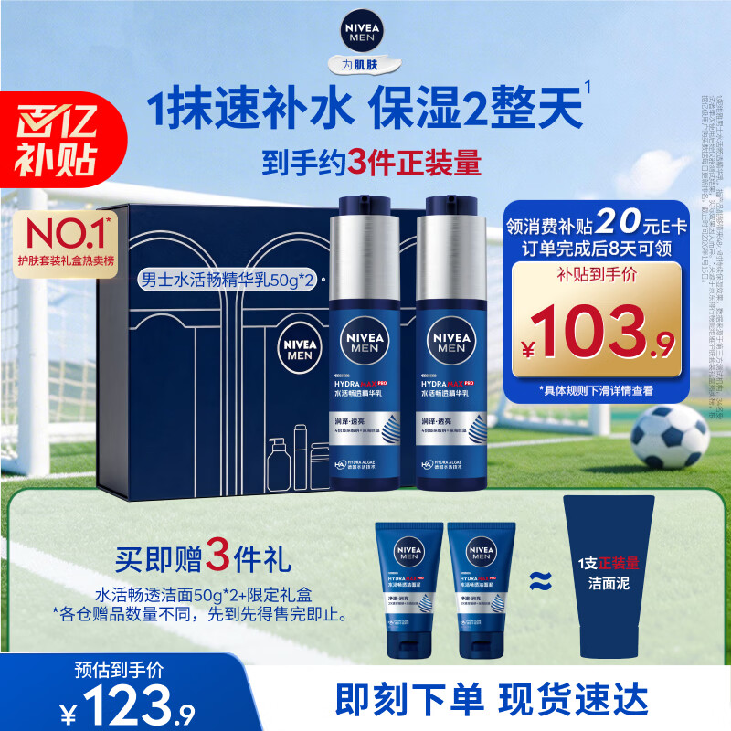 先领70-30卷 【自营】妮维雅 男士第5代 水活保湿精华小蓝管50g*
