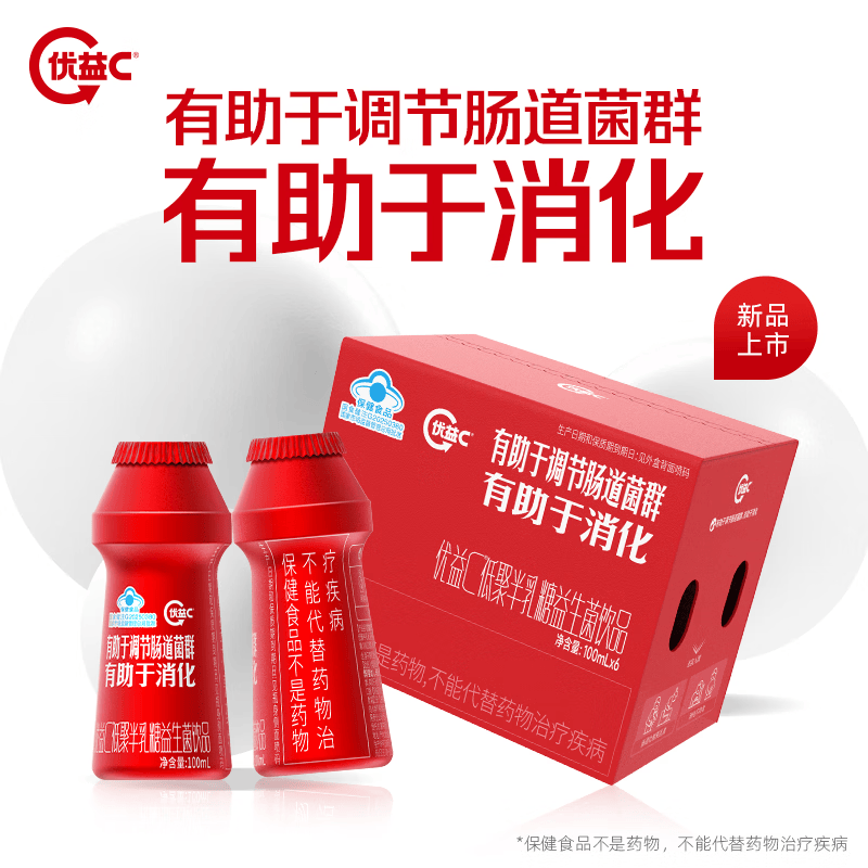 【自营】蒙牛优益C 100ml*6瓶 荬2件18亓 云费,Plus包.邮